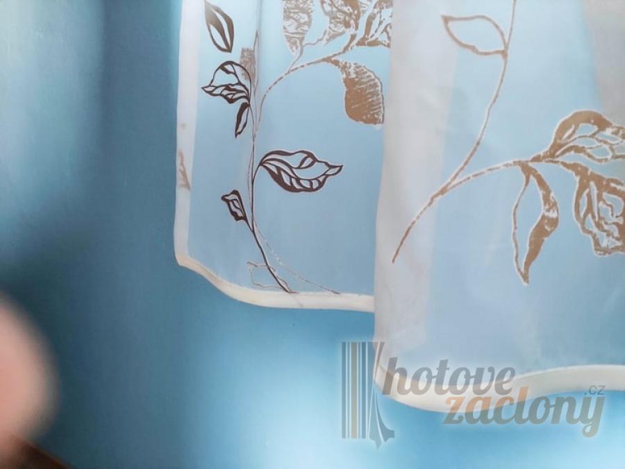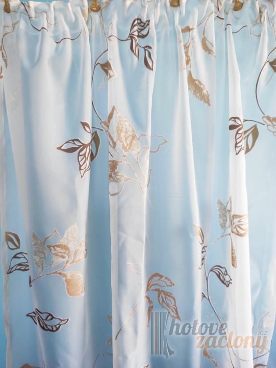 Jediný kus hotové záclony č.:1311 výšky: "130cm" šířky: "400cm" materialu: "biela záclona s hnědými listama"