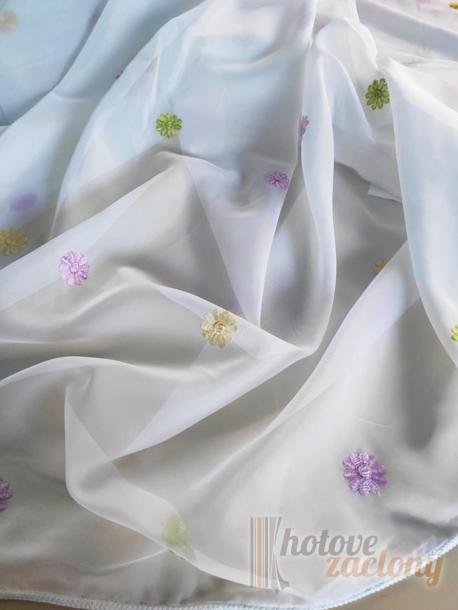 Jediný kus hotové záclony výšky: "160cm" šířky: "400cm" materialu: "vyšívaná s farebnými květinami"